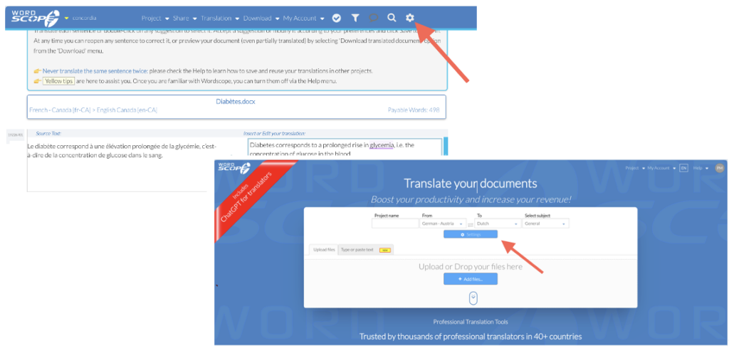 Wordscope is an all-in-one CAT tool, working seamlessly on both Mac and PC, that combines multiple machine translation engines, over a dozen specialized terminology tools, and the robust assistance of ChatGPT for Translators. It provides professional translators with advanced functionalities for translation, definition, rewriting, and much more.